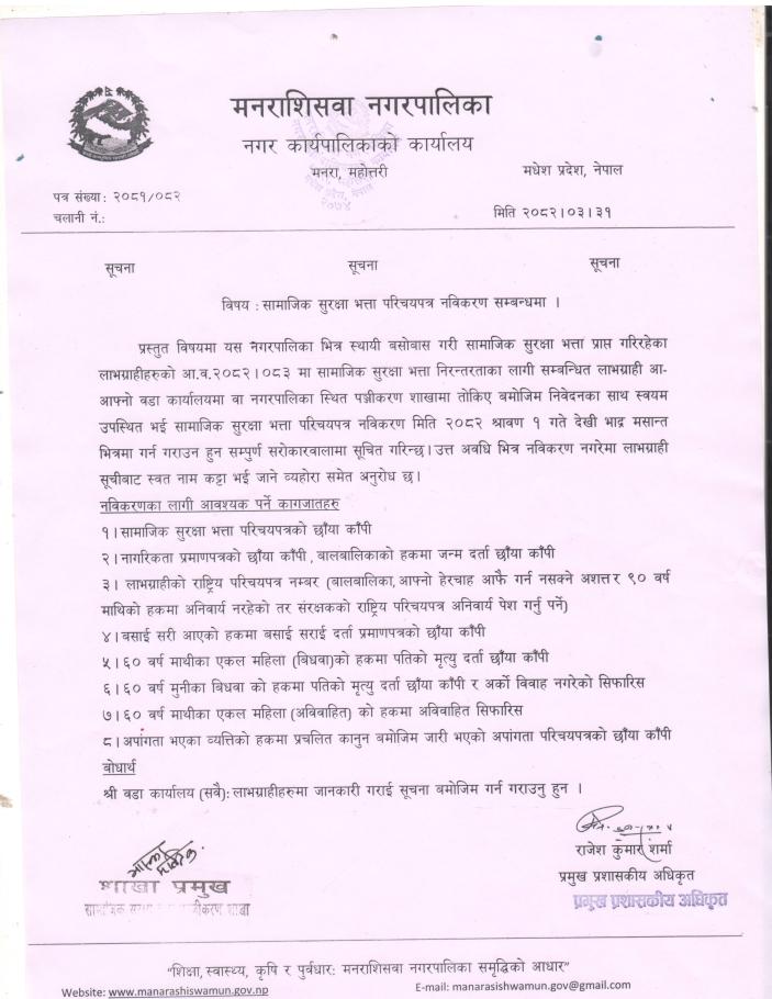 सा.सु. परिचयपत्र नवीकरण समबन्धमा